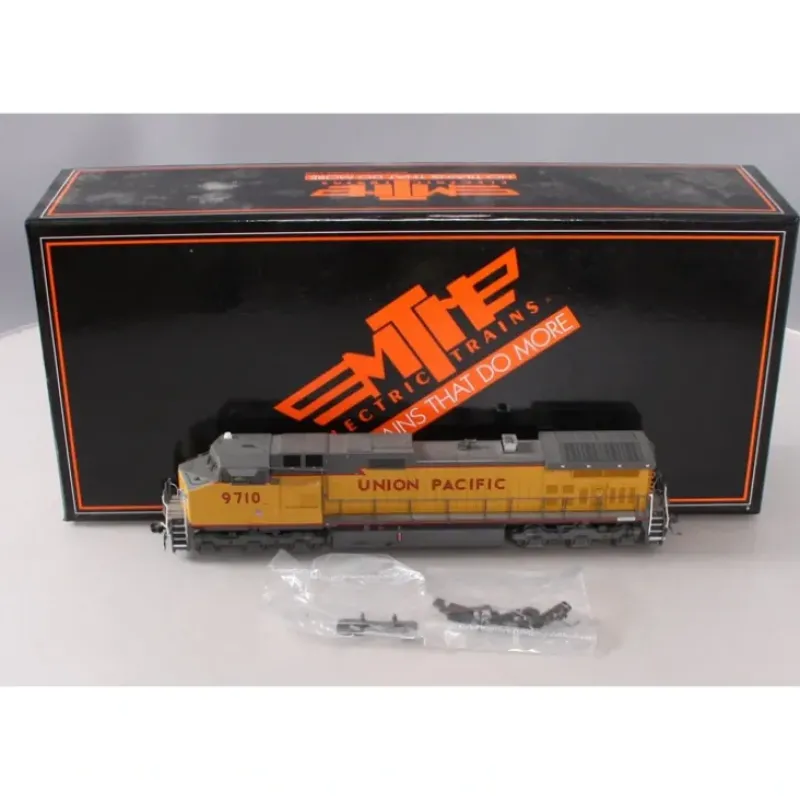 This is a MTH 8023091 HO Union Pacific Dash-9 Diesel Engine with Proto-Sound 3.0 #9710. This features Intricately Detailed ABS Body, Die-Cast Metal Chassis, Metal Handrails and Decorative Horn, Moveable Roof Fans, Metal Body Side Grilles, Detachable Snow Plow, (2) Engineer Cab Figures, Authentic Paint Scheme, Metal Wheels and Axles, RP25 Metal Wheels, (2) Operating Kadee Compatible Remote Controlled Proto-Couplers, (2) #158 Scale Kadee Whisker Couplers, Prototypical Rule 17 Lighting, Directionally Controlled Constant voltage LED Headlights, Lighted Cab Interior, Illuminated Number Boards, Operating Ditch Lights, Powerful 5-Pole Precision Flywheel Equipped Skew-Wound Balanced Motor, Locomotive Speed Control In Scale MPH Increments, Operates On Code 70, 83 and 100 Track, and 1:87 Scale Proportions.