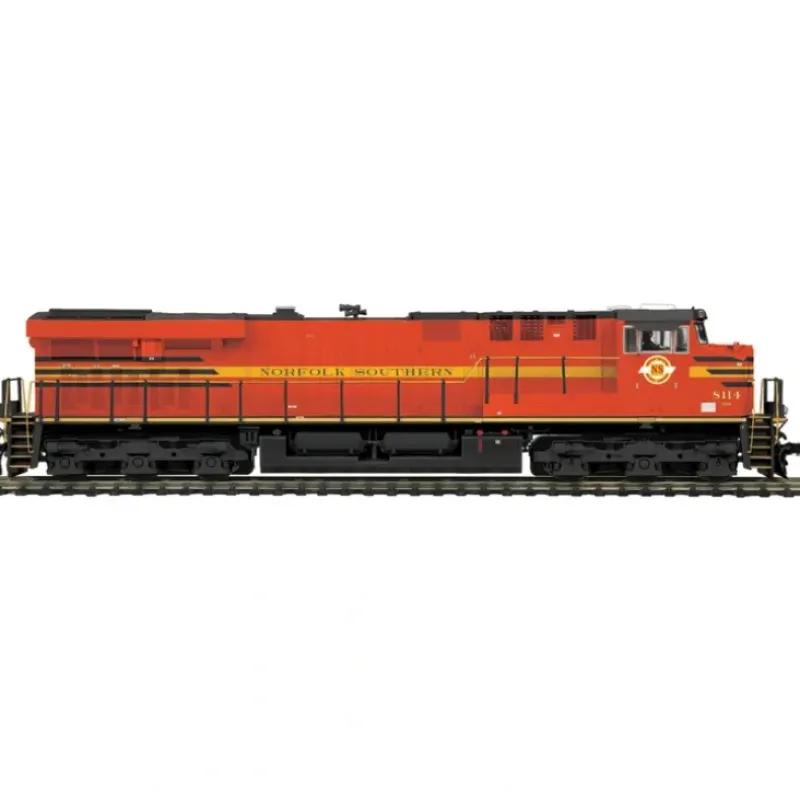 This is a MTH 80-2342-1 HO Norfolk Southern ES44AC Diesel Engine w/Proto-Sound 3.0 #8114. Model Features: Intricately Detailed ABS Body, Die-Cast Metal Chassis, Metal Handrails and Decorative Horn, Detailed Roof Fans, Detailed Body Side Grilles, Detachable Snow Plow, (2) Engineer Cab Figures, Authentic Paint Scheme, Metal Wheels and Axles, RP25 Metal Wheels, (2) Operating Kadee Compatible Remote Controlled Proto-Couplers, (2) #158 Scale Kadee Whisker Couplers, Prototypical Rule 17 Lighting, Directionally Controlled Constant voltage LED Headlights, Lighted Cab Interior, Illuminated Number Boards, Operating Ditch Lights, Powerful 5-Pole Precision Flywheel Equipped Skew-Wound Balanced Motor, Locomotive Speed Control In Scale MPH Increments, Onboard 28-Function DCC Receiver, Operates On Code 70, 83 and 100 Track, 1:87 Scale Proportions, Proto-Sound 3.0 equipped locomotives can be controlled in command mode with any DCC compliant command control system. While the user won’t have access to all of the incredible features of Proto-Sound 3.0, independent control over the locomotive is possible. This means you can continue to use your existing DCC controller to independently control your other DCC equipped locomotives in addition to your Proto-Sound 3.0 locomotive on the same track at the same time., When using a DCC controller, the following Proto-Sound 3.0 locomotive features are accessible, F0 Headlight, F1 Bell, F2 Whistle/Horn, F3 Start Up/Shut Down, F4 Rear Coupler, F5 Front Coupler, F6 Engine Sounds On/Off, F7 Sound Volume, F8 Ditch Lights Auto/On/Off, F9 Forward Signal, F10 Reverse Signal, F11 Grade Crossing Signal, F12 Cab Light On/Off, F13 Extended Start Up, F14 Extended Shut Down, F15 Rev Up, F16 Rev Down, F17 Coupler Slack Sound, F18 Coupler Close, F19 One-Shot Doppler, F20 Feature Reset, F21 Idle Sequence 1, F22 Idle Sequence 2, F23 Idle Sequence 3, F24 Ditch Lights Auto/On/Off, F25 Brakes Auto/Off, F26 Cab Chatter Auto/Off, F27 Clickety-Clack Auto/Off, F28 Coupler Slack Sound, Proto-Sound 3.0 With The Digital Command System Featuring: Freight Yard Proto-Effects, Unit Measures:10 9/16 x 1 7/16 x 2 3/16, Operates On 18 Radius Curves.