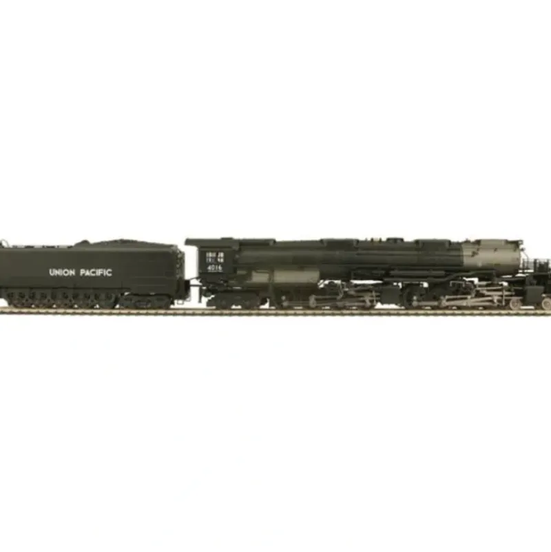 This is MTH 80-3209-1 HO UP 4-8-8-4 Big Boy #4016/3.0. 4-8-8-4 Big Boy (original) steam engine with Proto-Sound 3.0, Union Pacific. Cab number: 4016. Just months before Pearl Harbor, the American Locomotive Company delivered the first Big Boy to the Union Pacific Railroad. The UP’s Department of Research and Mechanical Standards had designed the locomotive for a specific task: to pull a 3600-ton train unassisted over the Wasatch Mountains in Utah. While the Big Boy is often cited as the biggest steam locomotive ever built, in fact it is not. The Norfolk & Western’s Y6 and A, the Duluth Missabe & Iron Range’s Yellowstones, and the Chesapeake and Ohio’s Alleghenys were all in the same league, and some exceeded the Big Boy’s weight and power.