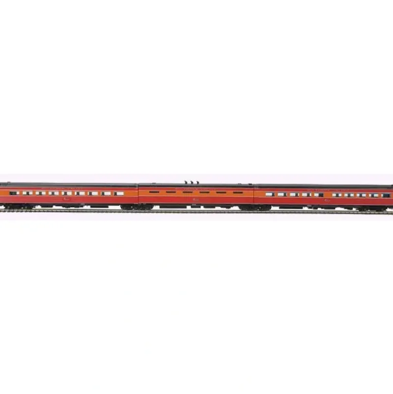 This is MTH 80-60030-5 3-Car Pass Set 3-Rl SP. 3-car diner/kitchen/coffee passenger set (3-rail), Southern Pacific. Car numbers: Diner/Kitchen/Coffee – 10256/10257/10258. In 1941 the Daylights were re-equipped with new Pullman-Standard train sets that included articulated cars with full-width diaphragms and no bulkheads between the cars – presenting passengers with spacious interiors up to 130 feet long, in the case of the triple unit coffee shop-kitchen-diner. Wide windows allowed chair car passengers to take in the glorious Pacific Coast scenery, and a rooftop radio antenna brought in news reports and music. Few passengers would argue with the Southern Pacifics claim that this was the worlds most beautiful train. New for 2008, M.T.H. offers authentic Daylight train sets in the original Southern Pacific Lines livery or the later Southern Pacific livery that lasted well into the diesel era.