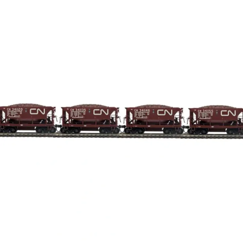 This is a MTH 8090086 HO Canadian National 70-Ton Center Discharge Ore Car with Load 4-Car Set #3. This set includes (4) Individually Numbered Cars. This features Intricately Detailed Durable ABS Body, Metal Wheels and Axles, Decorative Brake Wheels, Separate Metal Handrails, 1:87 Scale Dimensions, Kadee Couplers, Detailed Undercarriage, Detailed 4-Wheel Trucks, and Each Car Operates On 18 Radius Curves.