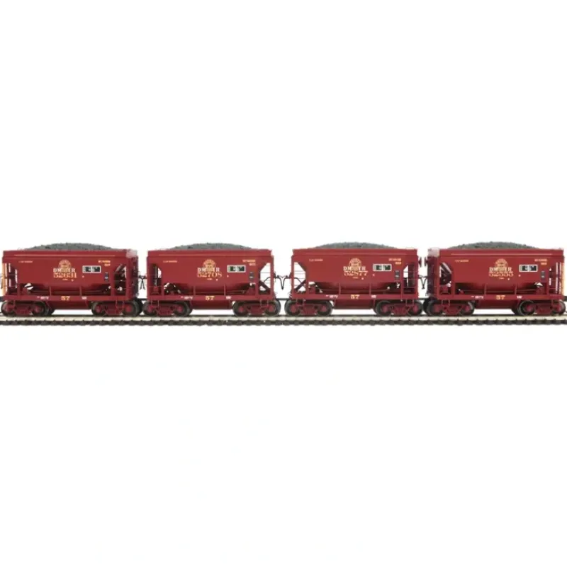 This is a MTH 8090096 HO Duluth Missabe & Iron Range 70-Ton Center Discharge Ore Car (U30) 4-Car Set #2. This set includes (4) Individually Numbered Cars, (2) Kadee Couplers, and (3) Mini-Quad Drawbars. This features Intricately Detailed Durable ABS Body, Metal Wheels and Axles, Decorative Brake Wheels, Separate Metal Handrails, 1:87 Scale Dimensions, Kadee Couplers or Mini-Quad Drawbar, Detailed Undercarriage, Detailed 4-Wheel Trucks, and Each Car Operates On 18 Radius Curves.
