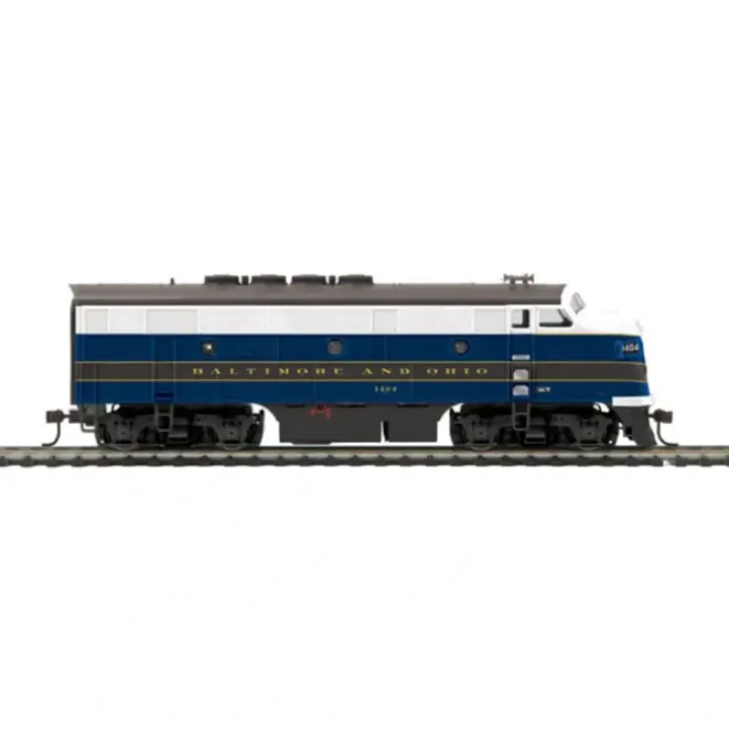 This is MTH 85-2009-0 HO F3A B&O #1404/DCC Ready. F-3 A unit (DCC Ready), Baltimore & Ohio. The EMD F-unit, built by the Electro-Motive Division of General Motors, was the diesel that did it – vanquished the steam engine from American railroads.