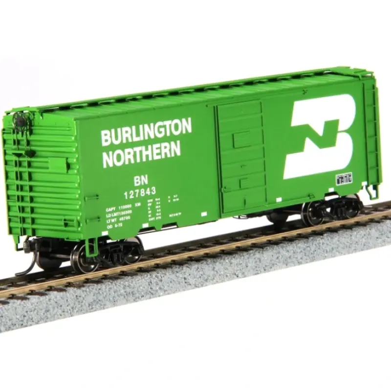 This is MTH 85-74104 HO 40 PS-1 Box car BN #127843. Burlington Northern. Ready 2 Rail provides the superior quality and detailing you’ve come to expect from M.T.H. coupled with a competitive price point for the entry-level HO hobbyist. These cars offer the same construction and body detailing as their more expensive counterparts, but designed for the budget-minded model railroader. It’s the perfect way to add to a Ready-To-Run set or to introduce someone new to the hobby.