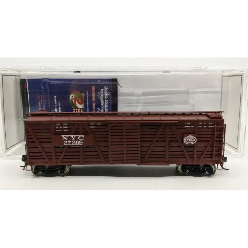 This is a Broadway Limited 2692 HO Scale New York Central PRR K7 Stock Car No Sound- Paragon2 (oxide).Stock cars were used to transport a variety of live animals, such as ca le, mules, horses, as well as hogs sheep and calves. Animal transport was and still is an important revenue stream for many railroads. BLIs K7A is a handsome reproduction of the Pennsylvania Railroad design. So, if your pike has livestock to move, we have the means. Our stock cars have been a hit for many years and were bringing them back due to popular demand. Order yours today. Industry-Leading Features of this Model:Premium Caliber Painting with Authentic Paint Schemes,Operating Knuckle Couplers,Minimum Radius: 18 or greater recommended.