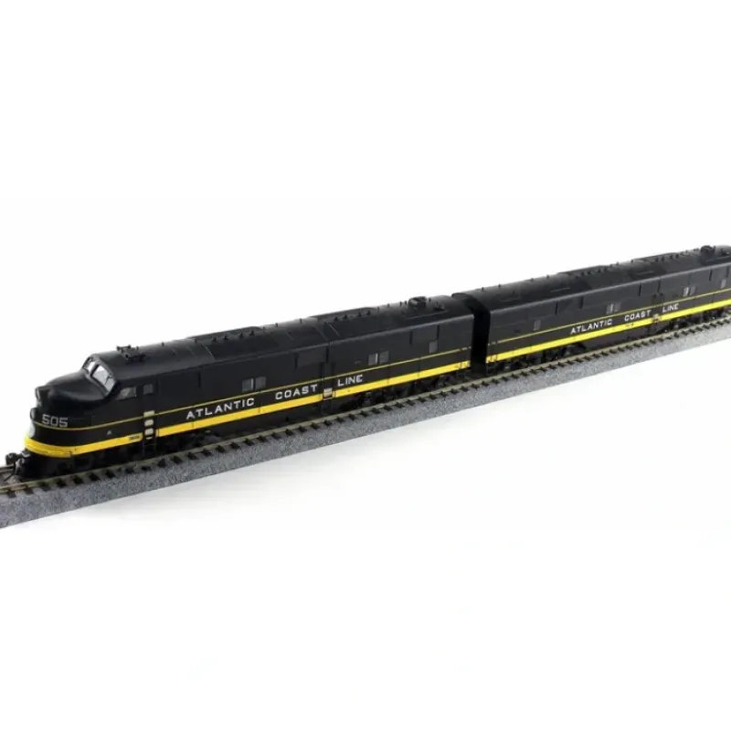 This is a Broadway Limited 3271 HO Scale Atlantic Coast Line EMD E6 Powered A-Unpowered B Set with Sound& DCC – Paragon2 #505, 751 (black, yellow, silver).Industry Leading Features: All New Paragon2 Sound and control system, Integral DC/DCC dual mode decoder for ease of operation on any layout, Industry best slow speed operation in DC and DCC, Prototypical light operation with headlight, cab light, rear light and Mars light (where applicable), Authentic EMD E-Unit Sounds – Controllable in DC and DCC, All-wheel drive and All-wheel electrical pick-up, 2 Operating knuckle couplers, Factory instAlled engineer and fireman figures, Near brass-caliber detail at a plastic price. Product Specifications: ABS plastic body with heavy die cast chassis for maximum tractive force,Precision gearing optimized for smooth operation, 5-pole can motor with skew wound armature and dual fly wheels, Separately applied handrails, ladders, horns, bell, and more, Will operate on code 70, 83 and 100 rail, Recommended minimum radius: 18 inches.