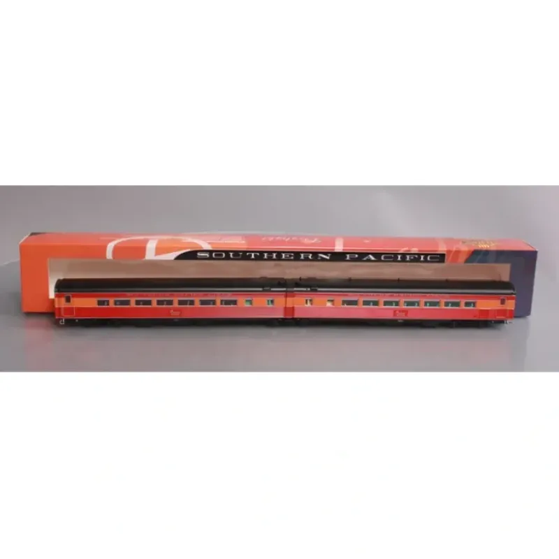 This is a Broadway Limited 692 HO Scale Southern Pacific Morning Daylight Passenger Articulated Chair Car W #2476/Chair M #2475. Features: 1941 Pre-war Version, Skirted Cars, Lettered Southern Pacific Lines, Beautifully DetaiLed, Accurate Passenger Cars, Authentic Design, Paint and Color Schemes, Many Separately Applied Details Including Hand Rails, DetaiLed, Properly colored interiors, Lighted Interiors, Operational Exterior lighting (where applicable), PrototypicAlly Accurate Articulated Cars (where applicable), Antennae (where applicable), Operating Full-width, Sprung Diaphragms, PrototypicAlly Accurate Match with PCM SP GS-4 Locomotives and PCM Alco PA/PB Locomotives, Observation Car: Lighted Drumhead & Marker Lights, Body Composition: ABS, Chassis Composition: ABS, (2) Kadee-compatible operating metal knuckle couplers., Compatible Tracks: Code 70, 83, 100 Rail, Recommended Minimum Radius: 22