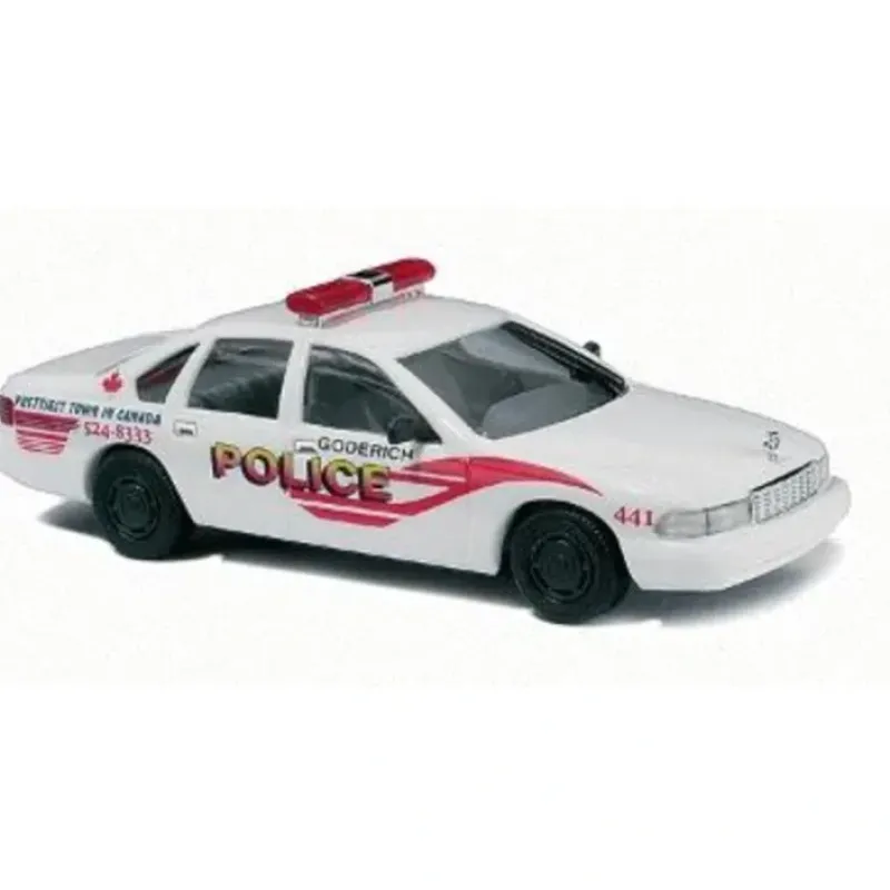This is a Busch 47627 1:87 Die Cast Goderich Police Chevrolet Caprice. American Automobile – Emergency Vehicle – Chevrolet Caprice — Police Department – Goderich, Ontario