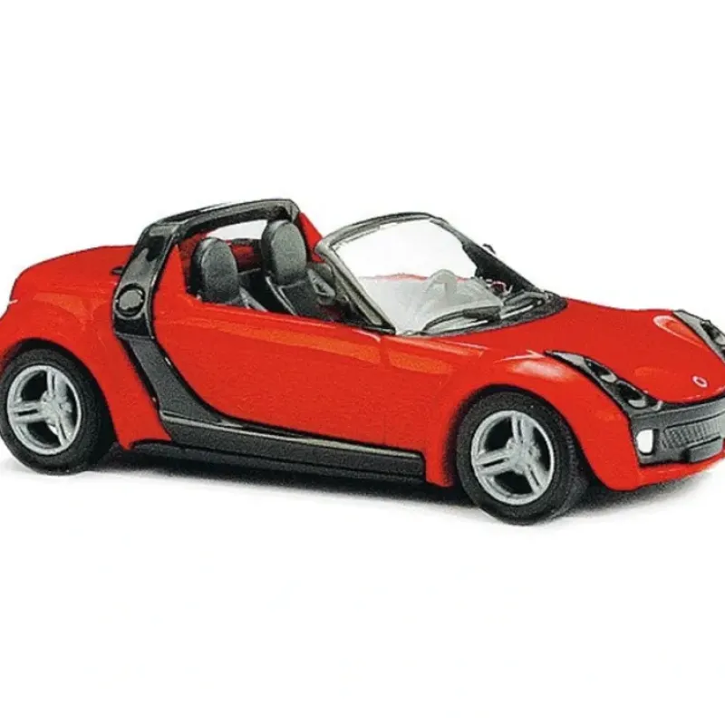 This is a Busch Gmbh & Co Kg 49300 HO Scale Automobile 2003 Smart Roadster 2-Door Convertible – Assembled Various Colors. Each Busch vehicle is fully assembled from plastic parts, and comes decorated with authentic markings and nonworking emergency lights where appropriate.
