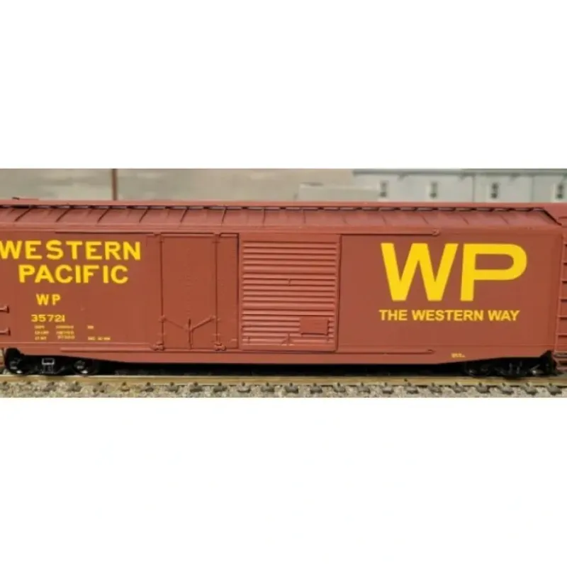 This is an InterMountain 45614-02 HO Western Pacific 50′ Double Door Box Car #35721. This car features plastic body construction, metal wheels and knuckle couplers.