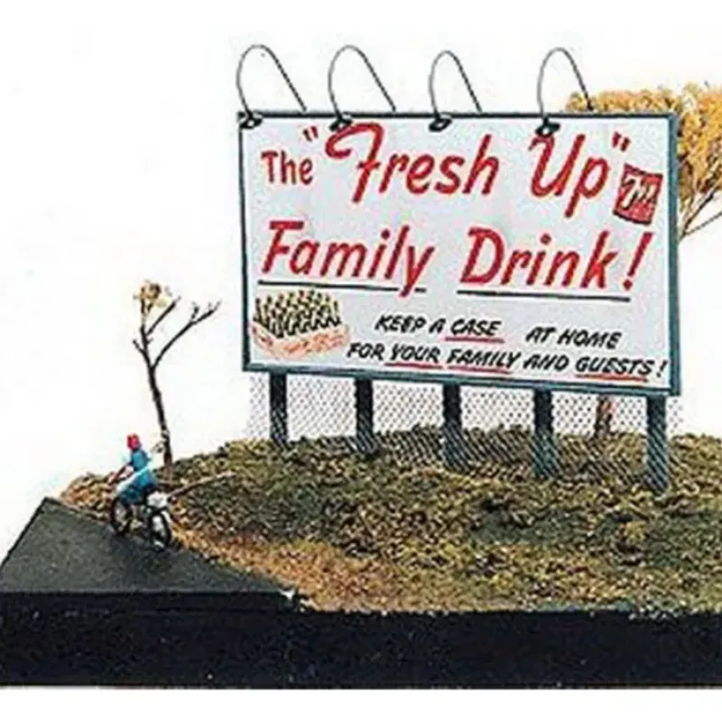 Kit features materials to construct two pole style billboards: ten full color billboard signs, six lampshades, linked fencing material, and illustrated instructions.