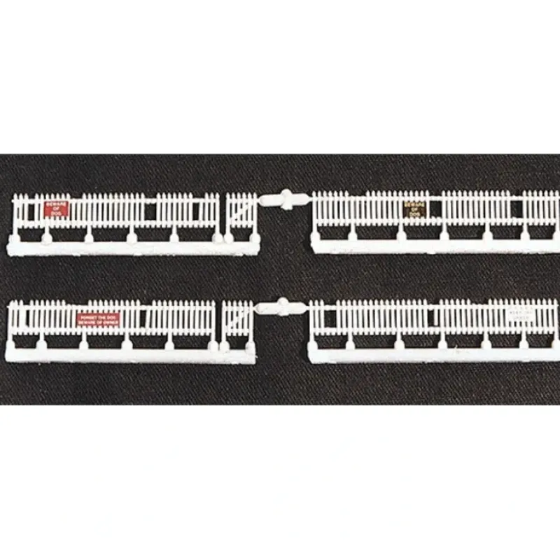 This is a JL Innovative Design 361-805 HO Scale Picket Fence Weathered w/Signs.