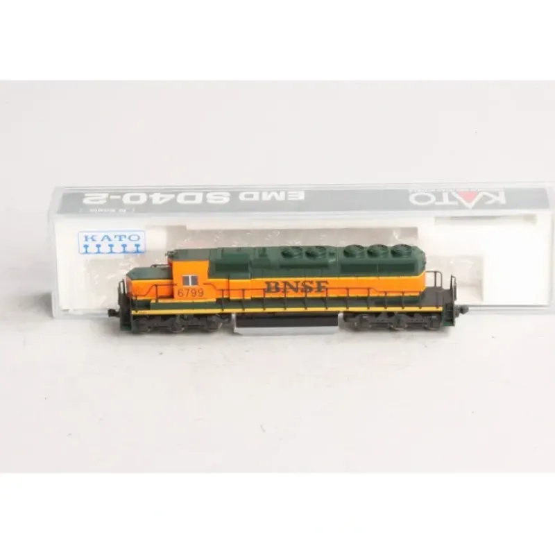 Here is a Kato 176-4901 N Scale BNSF SD40-2 Diesel Locomotive #6799. Features include a powerful motor, plastic construction, plastic trucks, plastic couplers, and metal wheels and axles.