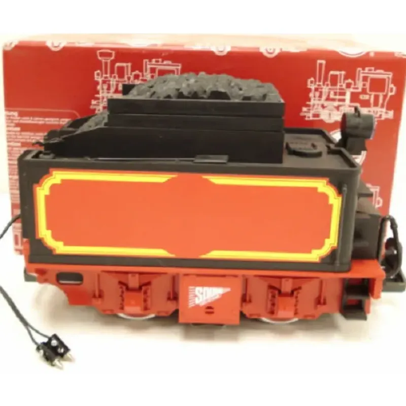 This is an LGB 69572 Santa Fe Motorized Tender with Sound. It’s easy to add power and sound to most European-style LGB starter set locos with an LGB motorized tender. This tender has a big Bhler motor powering all four wheels. Digital electronics generate steam, bell and whistle sounds. An adjustable volume control lets you set the sound level for indoors or outdoors. (No on/off switch.)