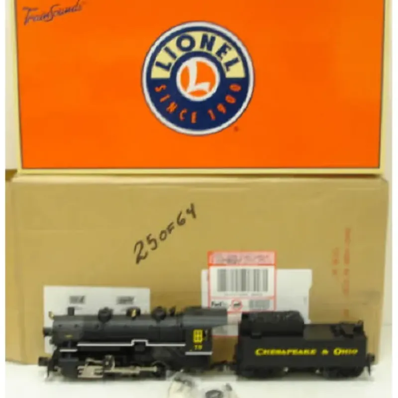 Here is a Lionel 6-11109 C&O 0-8-0 Steam Locomotive & Tender #79 w/TrainSounds. The USRA 0-8-0 performed switching duties and hauled short branchline trains on rails in every part of the country. With an 0-31 minimum curve, the Lionel 0-8-0 provides an affordable way to bring a scale-sized, super-detailed, steam locomotive to virtually any O gauge layout. Features Transformer controlled forward, neutral, and reverse operation, TrainSounds sound system, Powerful maintenance-free motor with momentum flywheel, Lighting including operating headlight and back-up light on rear of tender, Die-cast metal locomotive body, frame, trucks, and pilot, Front and rear operating couplers, Traction tires, Puffing fan-driven smoke unit, Opening roof hatches, Realistic, separately applied coal load, Separately applied metal details, Accurate separately applied builders plates, Illuminated cab interior, including painted valve handles, Glowing firebox in cab, Cab window glass, Engineer and fireman figures, Die-cast metal tender body and trucks. Minimum Curve: O-31. Dimensions: Length: 18 1/4 inches.