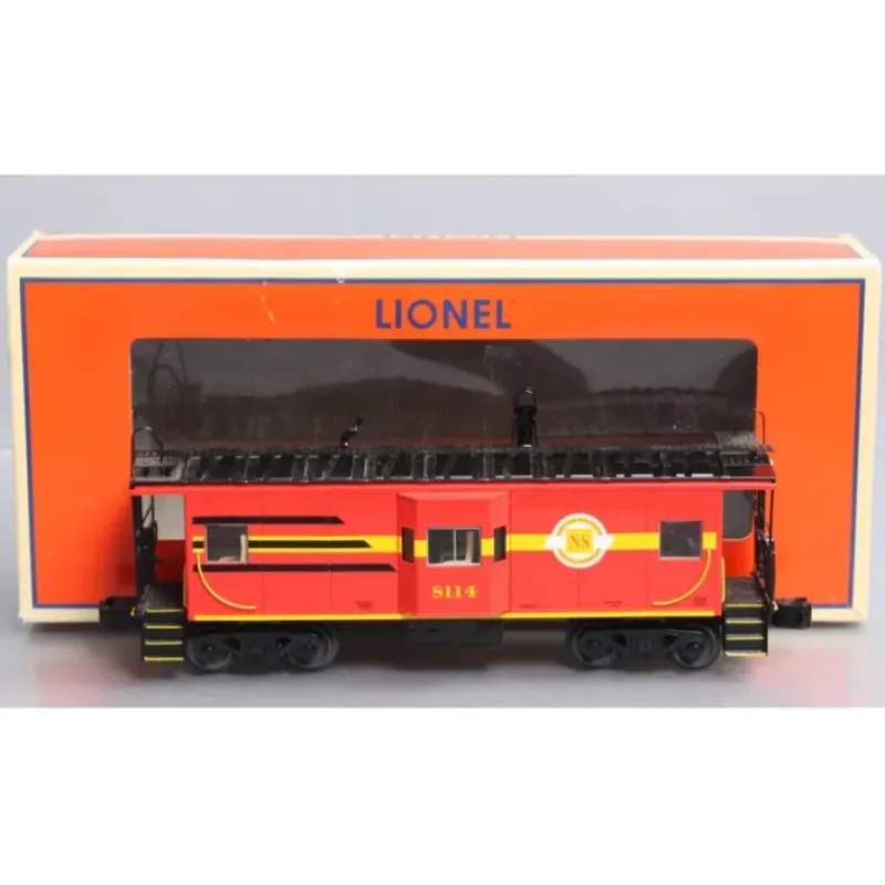 Here is a Lionel 6-27694 O Gauge Norfolk Southern NS Heritage Bay Window Caboose #8114. On this year, Norfolk Southern unveiled a striking new fleet of commemorative diesels in honor of its fallen flags. What a delight to watch these colorful units roll out of the paint shops in liveries that have been missed for decades! Following Norfolk Southerns lead, Lionel introduces the first group of ten ES44AC heritage schemes with the locomotives in both powered and non-powered versions. And for each engine, a matching caboose and freight car are also available. Features include: Die-cast metal trucks, Hidden uncoupling tabs, Separately applied metal underframe details, Smoke with On/Off control, Detailed and painted interior with figures, Interior illumination & Rotating bearing caps. Road Number: 8114 Gauge: Standard O Scale. Dimensions: Length: 10 . RailLine: Norfolk Southern. Minimum Curve: O-31.