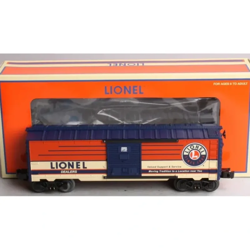 Here is a Lionel 6-29955 O Gauge 2008 Dealer’s Appreciation Boxcar. This freight car features a durable plastic construction with sliding doors, die-cast metal sprung trucks, metal wheels and axles, and operating knuckle couplers.