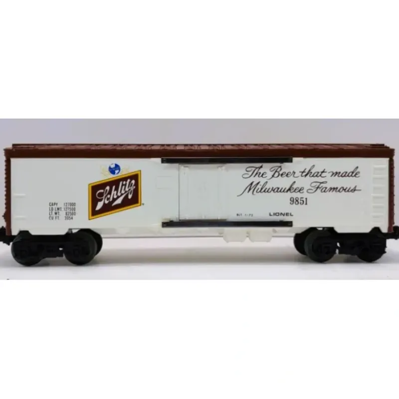 Here is a Lionel 6-9851 O Gauge Schlitz Billboard Reefer Car #9851 from 1973-75.