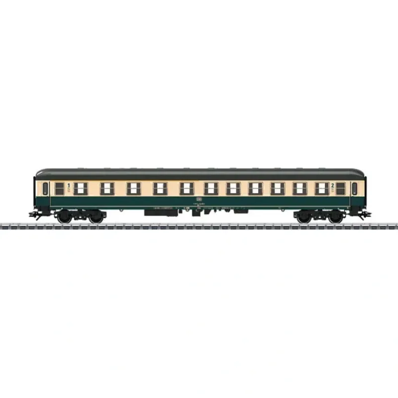 This is a Marklin 43932 HO Scale German Federal Railroad DB Type ABm 225 1st(2)nd Class (Era IV, Mid-1980s, ocean blue, beige). The entry doors have one-piece door windows. The entries have fold-up steps. The newly designed underbody is specific to the type of car. The trucks are Minden-Deutz heavy design (type 361) with disk brakes, without magnetic rail brakes, and with type G 150 axle generators at axle bearing R3. The 7319 current conducting couplings or the 72021 current conducting couplers, the 73406 pickup shoe, the 73400/73401 lighting kit (2 per car), and the 73407 marker light kit can be installed in the car. The minimum radius for operation is 360 mm / 14-3/16. A decal set is included.Highlights: Entry doors with one-piece door windows. Minden-Deutz heavy design (type 361) trucks. Newly designed underbody with fold-up steps specific to the type of car.