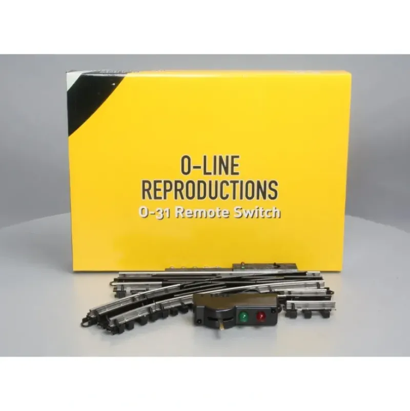 This is an O-Line 605 O Gauge SnapTrack O31 Left Hand Remote Switch Track. Track features motor driven, compatible with all tabular 3-rail track, LED indicators, low profile swich housing, operates on fized or track voltage, blackened center rail, snap together or connect with pins.