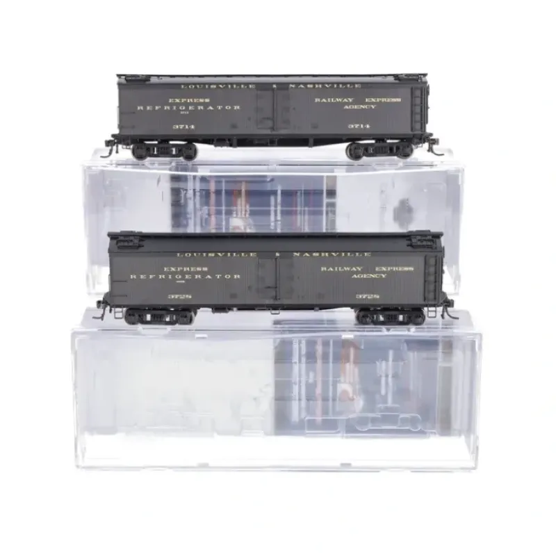 Here is a Broadway Limited 1856 HO L&N GACX 53’6″ Wood Reefer #3714,3728 (Pack of 2). Features: Plastic (ABS) body with ABS chassis, Metal wheels and axles milled for Ultra-Smooth Friction-Free movement, Prototypically accurate design, paint, and color schemes, Many separate applied details including grab irons, steps, etc. Operating Magnetic knuckle couplers, Will operate on Code 70, 83 and 100 rail, Recommended minimum radius: 18 in.