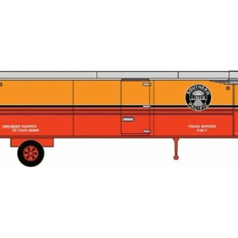 This is Classic Metal Works 51151 N Mini Metals AeroVan Trailer – Southern Pacific (2). Classic Metal Works Mini Metals vehicles are ideal for your transition-era layouts. These AeroVan Trailers come decorated in familiar vintage railroad schemes, so they’ll look great out on the highway or pulled up at freight transfers and factories.