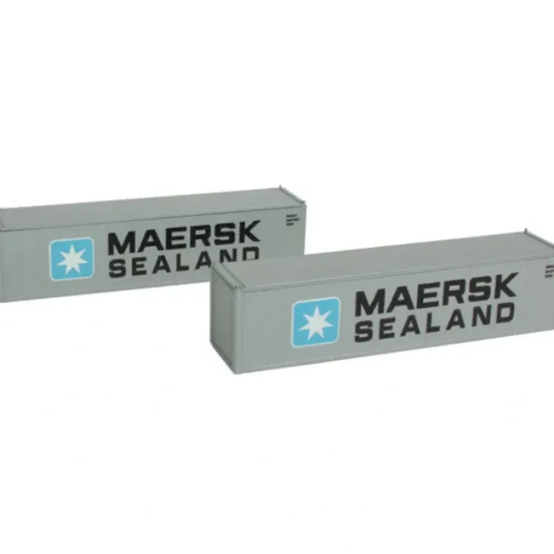 This is a Con-Cor 223-443018 N Scale 40′ Hi-Cube Container 2-Pack – Ready to Run Maersk Sealand #2 (gray, blue, black)