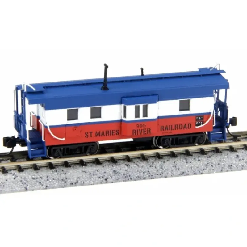 This is a Fox Valley Models 282-91025 N Scale Milwaukee Road High-Window Rib-Side Caboose w/Oil Door – Ready to Run St. Maries River Railroad #995 (blue, white, orange)
