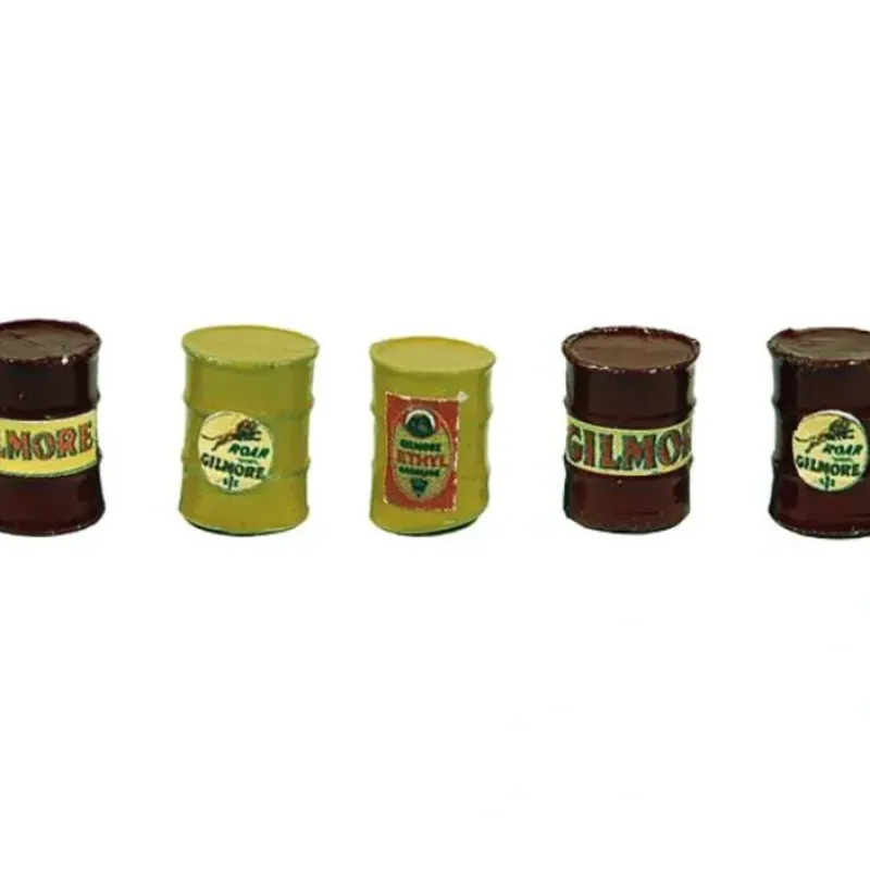 This is a JL Innovative Design 361-568 HO Scale Custom Oil Barrel pkg(5) Gilmore (mustard red)