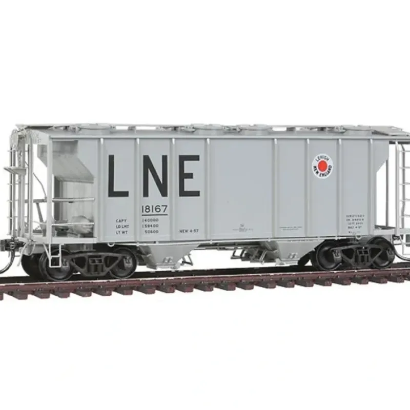 This is a Kadee 8036 HO Scale PS-2 2-Bay Covered Hopper, LNE 18167. Pullman-Standard PS-2 2-bay covered hopper, ready to run. Lehigh & New England #18167 (light gray). Already assembled and is based on the ones built in 1957. This is also includes a modern type of brake wheel, and notched roof hatch covers. Alkali resisting light gray. Its key features are: Finely detailed grab iron, ladders, stirrups, handrails, see-through roofwalk and brake step Accurately detailed brake wheel with proper curved contour, ribbing and outline highlighting the brake rigging and chain Accurately detailed heralds, legible and prototypical lettering and coloring Kadee magne-matic scale metal couplers with delayed magnetic uncoupling and scale draft gear box for accurate, reliable coupling that lasts and lasts N.M.R.A. standard weight, low center of gravity for optimum operating performance Kadee smooth rolling wheels and trucks with self-centering action Limited production piece, which makes this car a valuable collector’s item Made in the USA