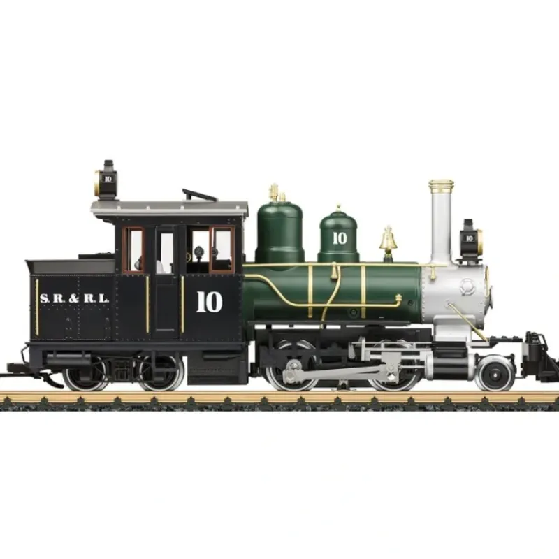 This is a LGB 27253 G Scale Forney 2-4-4 – Standard DC Sandy River & Rangeley Lakes #10 (green, black, silver). Forney steam locomotive in the execution of the SR & RL. Its key features are: Alternately powerful motor Headlights with the direction of travel Multi-purpose socket Digital interface Retrofitting with a digital decoder is possible without any problems Equipped with a front bull bars Length: over the buffers 45 cm