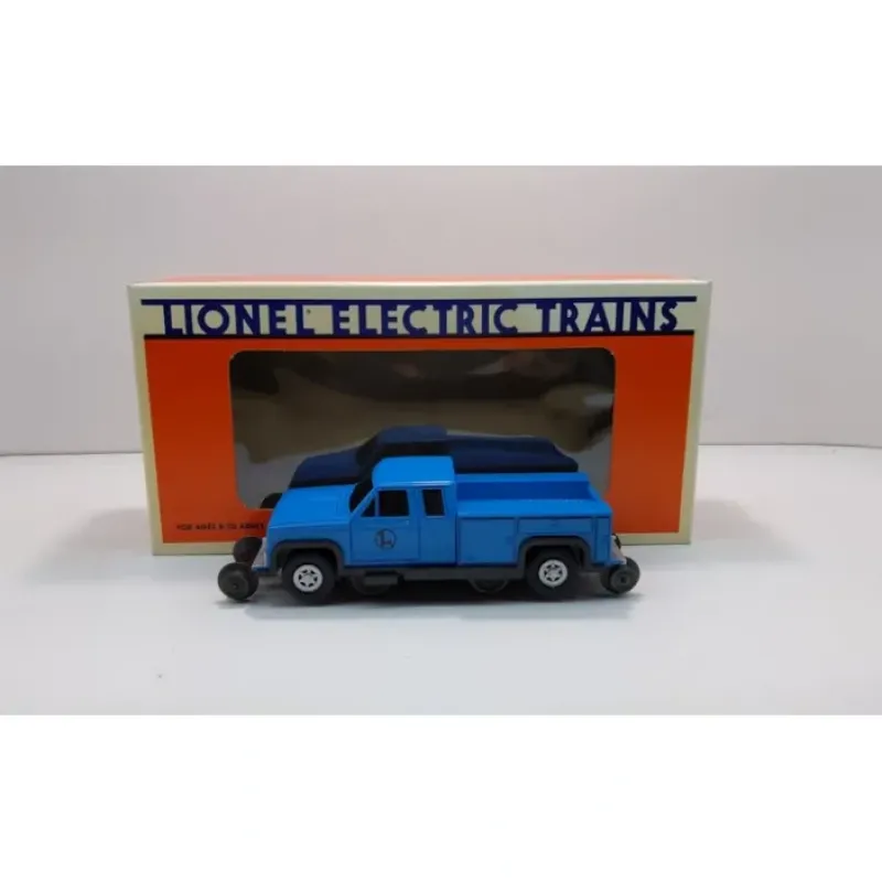This is a Lionel 6-18424 O Gauge On-Track Pickup Truck from 1995. It has a DC can motor that runs on AC or DC. In typical Lionel 3-rail AC operation it runs forward only. This truck features operating front and rear lights.