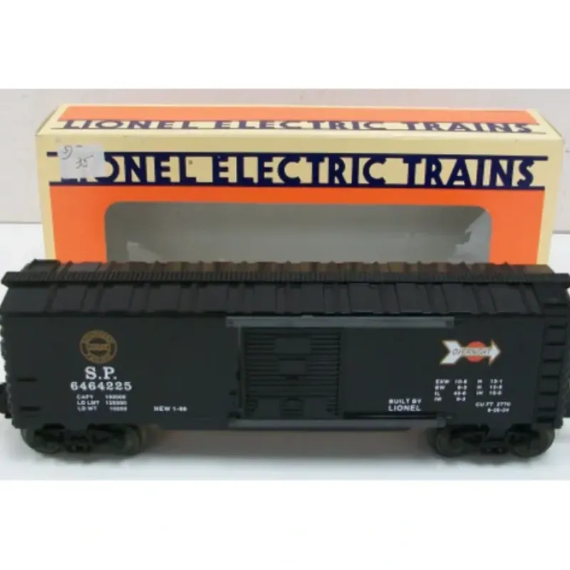 Here is a Lionel 6-19274 O Gauge Southern Pacific Boxcar #6464225 built in 1996, a remake of the #6464 Boxcar from the Postwar Era. This car features a plastic construction with die-cast metal sprung trucks, metal wheels and axles, sliding doors, and operating knuckle couplers.