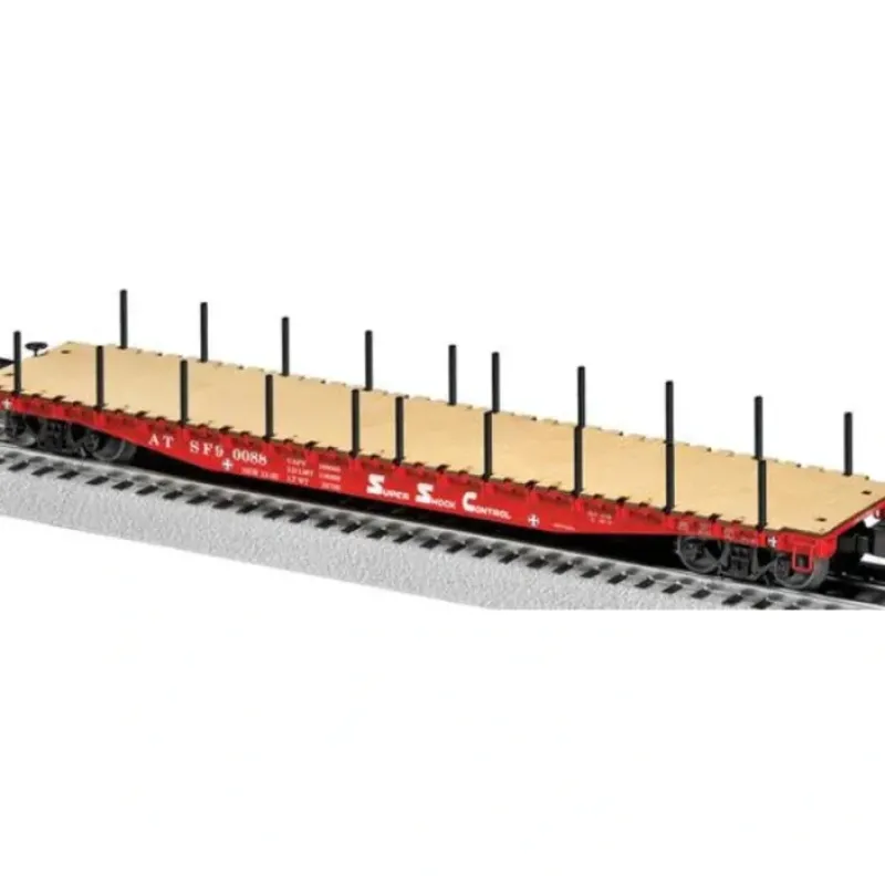 This is Lionel 6-19384 PS-4 Flat w/Stakes ATSF. Santa Fe PS-4 flatcar with stakes #90088. PS-4 flatcar with stakes. A renowned builder of both passenger and freight cars, the Pullman Standard Car Manufacturing Company operated at plants in Massachusetts,