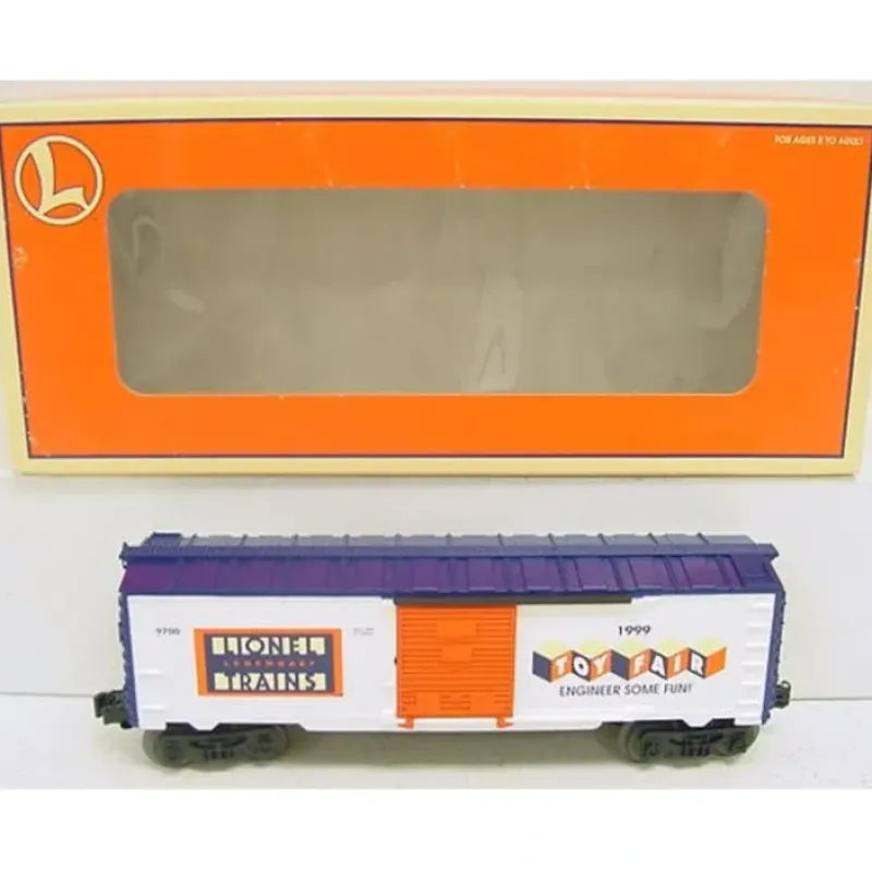 Here is a Lionel 6-19977 O Gauge 1999 Toy Fair Boxcar from 1999. Toy Fair cars were produced in very small quantities as few as one per dealer that actually attended the New York Toy Fair and visited the Lionel showroom to one per dealer. It features opening doors, magnetic couplers, metal wheels and axles.
