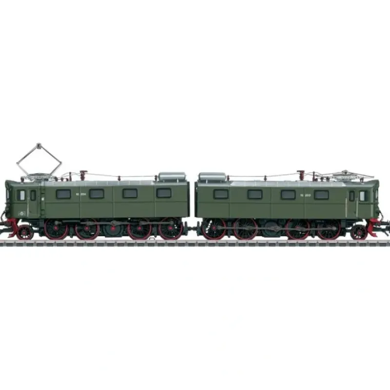 This is a Marklin, Inc 37754 HO Scale Class El 12 2-Unit Electric – 3-Rail with Sound & Digital Norwegian State Railways NSB #2113, 2114 (Era IV 1970, olive green). Norwegian State Railways (NSB) class El 12 heavy ore locomotive as a 2-part side rod electric locomotive. Used on the ore line Lulea – Kiruna – Narvik. Olive green basic paint scheme, large headlights, engineer’s cab doors in the old arrangement, large snow plows (Norrland plows) and spoked wheels. The locomotive looks as it did around 1970. Model features highly detailed metal frame and body, mfx digital decoder, extensive sound functions, 2 controlled high-efficiency propulsion systems with flywheels, 1 motor in each loco, engineer’s cab in 1 loco, all 4 driving axles powered in each unit, traction tires, detailed roofs and many separately applied details. Cabs 1 and 2 can be controlled separately in digital operation. Maintenance-free, warm white LED lighting will work in conventional or DCC operation. Units are permanently coupled together.