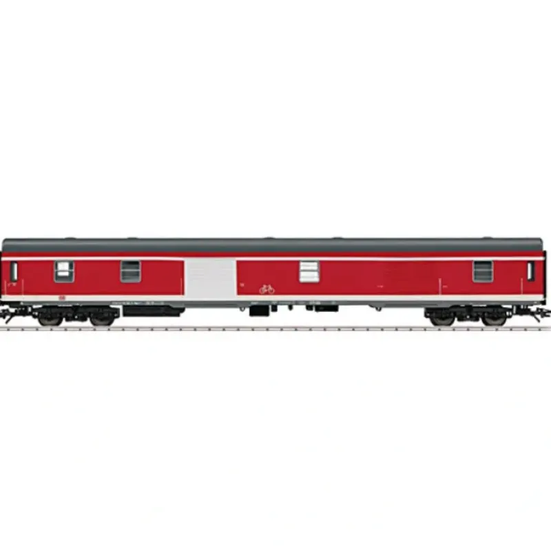 This is a Marklin 43961 HO Scale German Railroad DB AG Type Dduu 4981 Baggage Car Readu to Run (Era V 2003, Traffic Red, gray).