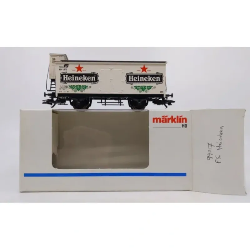 Here is a Marklin HO Scale Italia Heineken Beer Brewery w/ Brakeman’s Cab #8045675. This car features plastic construction, plastic trucks, metal wheels and axles, and plastic couplers.
