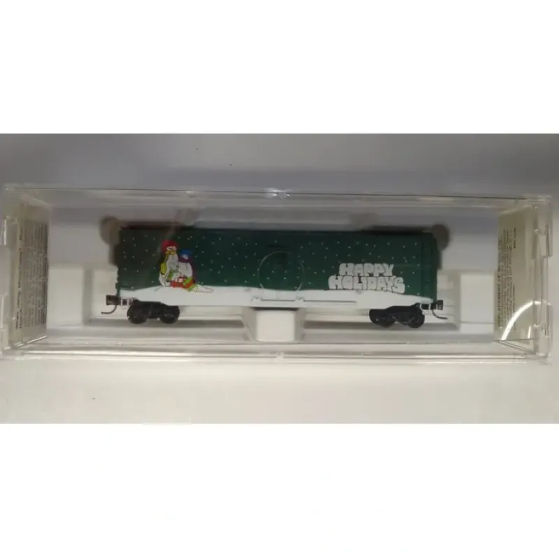 Here is a Micro-Trains 13625-2 Z Scale Happy Holidays MTL Freight Car. This product features a plastic construction with plastic wheels and knuckle couplers.