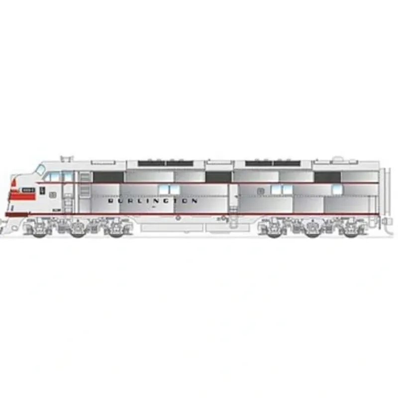This is a Broadway Limited 3225 N Scale Chicago, Burlington & Quincy EMD E7A with Sound& DCC – Paragon2 #9919B (silver, red).Most of the premier passenger trains including the AT&SF Super Chief, various CB&Q Zephyrs, Great Northern’s Empire Builder, New York Central’s Twentieth Century and Pennsylvania Railroad’s Broadway Limited were pulled by EMD E unit diesel locomotives from the 1940’s to the 1970’s. The E3’s were introduced in 1939 and became the first standard road diesel locomotive that could be ordered off-the-shelf. The E6’s were essentiAlly the same locomotives as the E3’s and differed little in appearance. Broadway Limited is releasing a variety of the shovel-nosed E6’s used to pull so many popular passenger trains. Each model will be equipped with our New Paragon2 DC/DCC Sound & Control system. Industry-Leading Features: All New Paragon2 Sound and control system,Integral DC/DCC dual mode decoder for ease of operation,Industry best slow-speed operation in DC and DCC,Prototypical light operation with headlight,Authentic EMD E6 Sounds! Controllable in DC and DCC.,All-wheel drive and All-wheel electrical pick-up,Operating knuckle couplers,Near brass-caliber detail at a plastic price. Product Information: ABS plastic body with heavy die cast chassis for maximum tractive effort,Precision gearing,5-pole can motor with skew wound armature and dual fly wheels,Locomotive Length (coupler to coupler): 5.5 inches,Locomotive Weight: 4 oz,Many separately applied details such as handrails, ladders, whistle,Will Operate on Codes 80, 70, 60, and 55 rail,Recommended Minimum Radius: 9.75 inches.