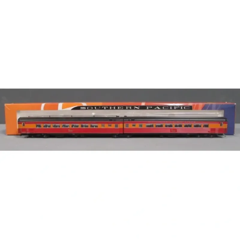This is a Broadway Limited 682 HO Scale Southern Pacific Morning Daylight 1941 Prewar Style 2-Car Articulated Chair Car Set W/Antenna W#2474/M#2473. Features include: 1941 Pre-war Version, Skirted Cars, Lettered Southern Pacific Lines, Beautifully Detailed, Accurate Passenger Cars, Authentic Design, Paint and Color Schemes, Many Separately Applied Details Including Hand Rails, Detailed, Properly colored interiors, Lighted Interiors, Operational Exterior Lighting (where applicable), Prototypically Accurate Articulated Cars (where applicable), Antennae (where applicable), Operating Full-width, Sprung Diaphragms, Prototypically Accurate Match with PCM SP GS-4 Locomotives and PCM Alco PA/PB Locomotives, Observation Car: Lighted Drumhead & Marker Lights, Body Composition: ABS,Chassis Composition: ABS, (2) Kadee-compatible operating metal knuckle couplers, Compatible Tracks: Code 70, 83, 100 Rail, Recommended Minimum Radius: 22.