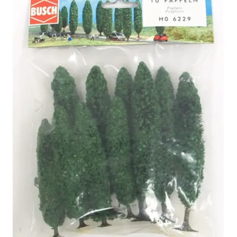 Here is a Busch 6229 HO Scale Poplar Tees (10). It includes 10 Poplar trees, 6 pieces of 120 mm and 4 pieces of 95 mm high.