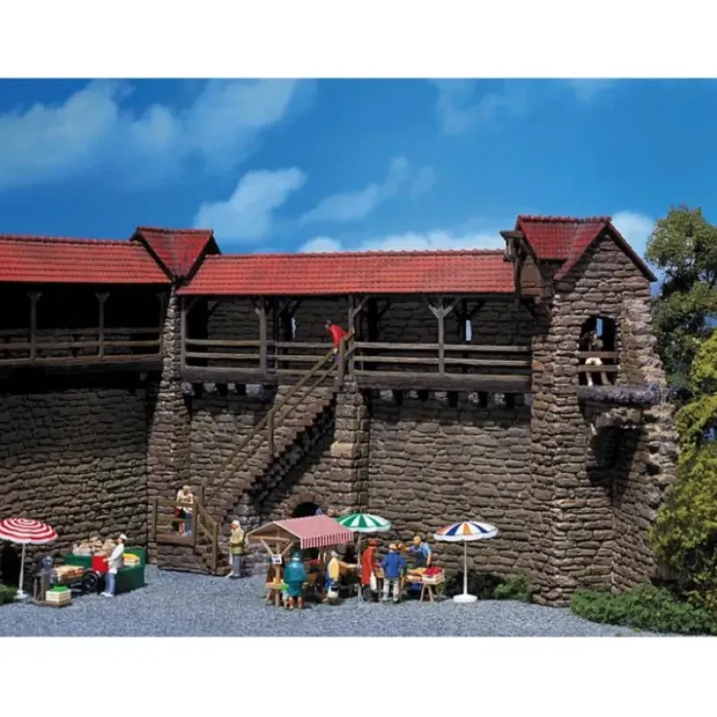 This is Faller 130403 Old Town Peel Towers. To be used as ends or for linking old town brick elements. Each with defence towers, one with 45 and one with 90. The 90 defence tower can be either built as an angled or straight-lined intermediate tower element. The respective parts are included. This building kit contains: 51 single parts in 3 colours and 1 construction instruction.