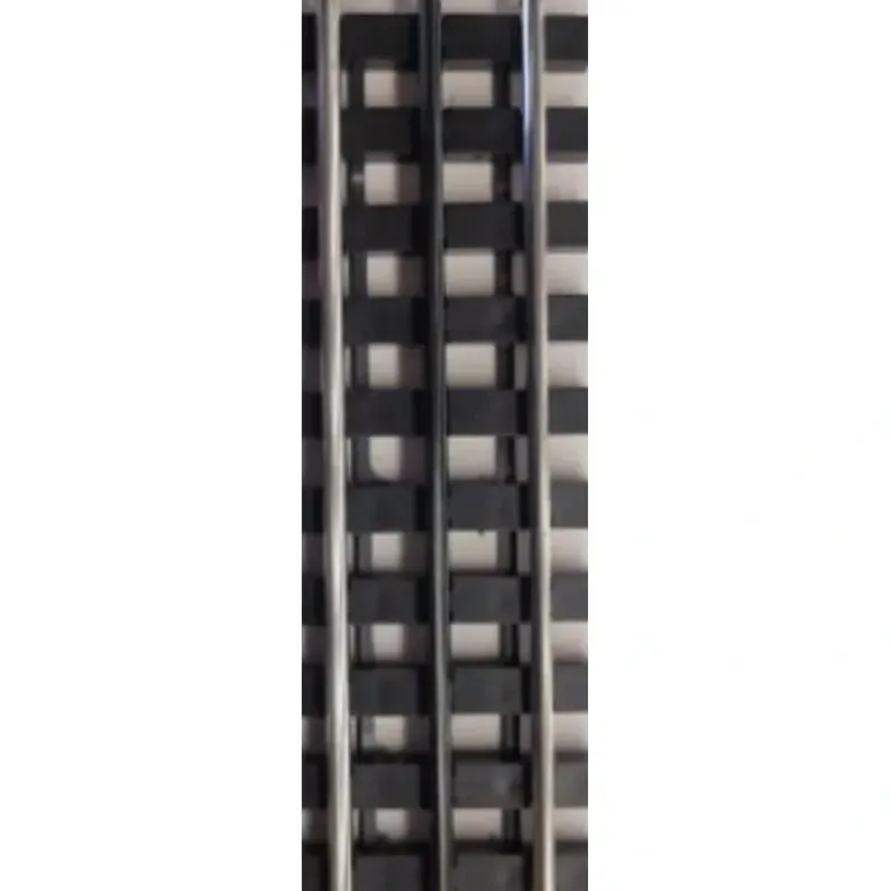 This is a section of This section of track features wooden ties and metal rails. The phantom track has a blackened center rail while the regular track has an unpainted metal center rail.