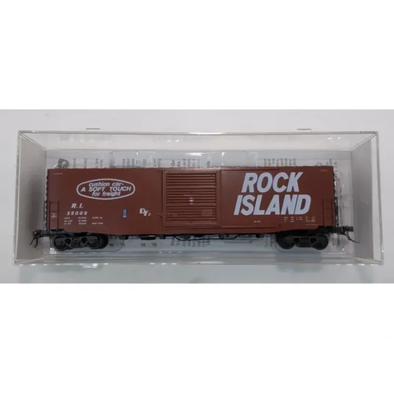 This is a Kadee 6353 HO Scale 50′ PS-1 Boxcar, RI 35009. With 10′ Youngstown door, ready to run, Rock Island. Already assembled and is based on ones built in 1969. This also includes a modern type of brake wheel, a 9′ Youngstown door, and a H-40 cushion underframe. Its key features are: Finely detailed grab iron, ladders, stirrups, handrails, see-through roofwalk and brake step Accurately detailed brake wheel with proper curved contour, ribbing and outline highlighting the brake rigging and chain Accurately detailed heralds, legible and prototypical lettering and coloring Kadee magne-matic scale metal couplers with delayed magnetic uncoupling and scale draft gear box for accurate, reliable coupling that lasts and lasts N.M.R.A. standard weight, low center of gravity for optimum operating performance Kadee smooth rolling wheels and trucks with self-centering action Limited production piece, which makes this car a valuable collector’s item Made in the USA