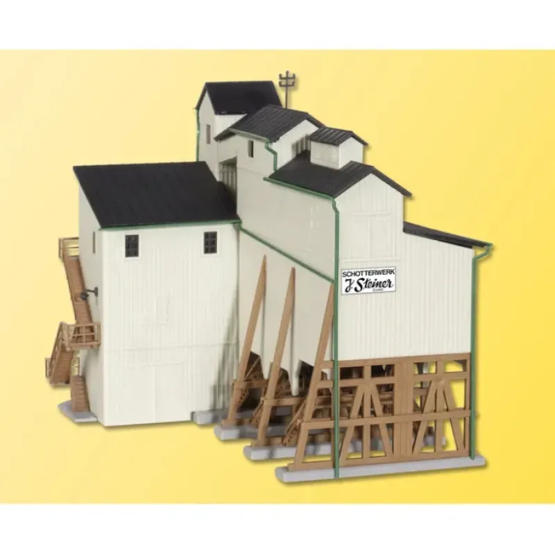 This is Kibri 37226 Gravel Works/Loading Silo. Dimensions: 6 x 4-3/16 x 4-5/8 (15cm x 10.5cm x 11.5cm).