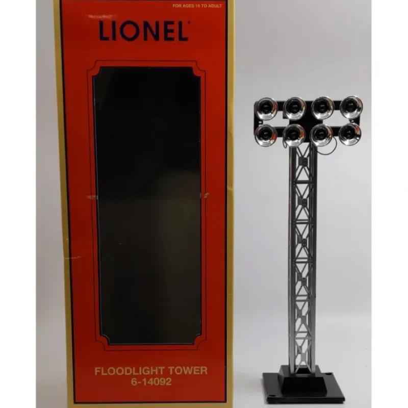 This is a Lionel 6-14092 O 8-Light Floodlight Tower. This floodlight tower features detailed molded construction, illumination from eight elevated bulbs, and tilted head.