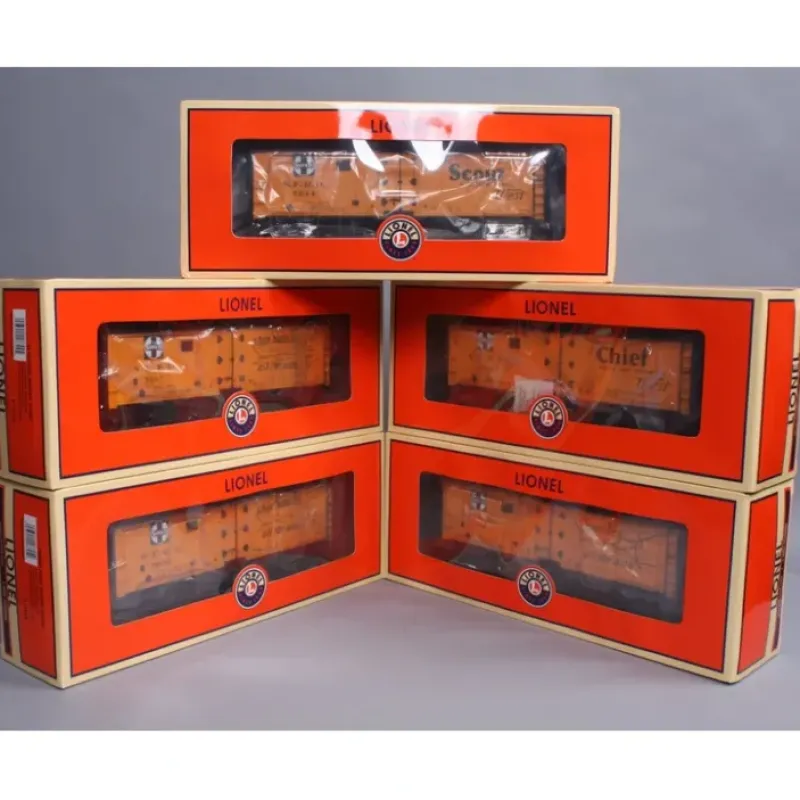 Here is a Lionel 6-17741 Santa Fe Steel Sided Billboard Reefer 5-Car Set. These cars feature die cast metal sprung trucks, operating knuckle couplers, opening side doors and roof hatches, and metal wheels. Road numbers include: 3500, 4244, 7600, 7887, and 34799.