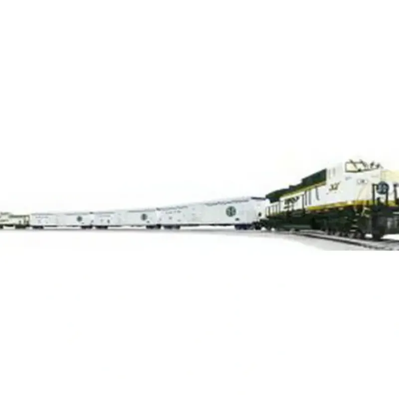 Set Includes a AC6000 diesel locomotive, One operating mechanical refrigerator car with ice cold smoke, One operating mechanical refrigerator car with generator sounds, One mechanical refrigerator car with interior load, and One extended vision caboose. Locomotive Features include: LEGACY Control System equipped able to run in LEGACY Control mode, in TrainMaster Command Control mode, or in Conventional mode with a standard transformer and Odyssey II Speed Control with On/Off switch. LEGACY RailSounds system features CrewTalk dialog and TowerCom announcements, each with different scenarios depending on whether the locomotive is in motion or stopped, Six official railroad speeds with CrewTalk dialog, Eight diesel RPM levels, LEGACY Real-Time Quilling Horn control with instant quilling and correctly timed warning signals, and Single hit or continuous mechanical bell sounds. Other locomotive features include Front and rear ElectroCouplers, Dual powerful maintenance-free motors with momentum flywheels, Refined Conventional Transformer Control Mode with lower starting speeds, Traction tires, Fan-driven smoke unit, Adjustable smoke output, Directional lighting including LED headlights, Illuminated number boards, Illuminated cab interior, Oscillating ditch lights, Ground lights, Die-cast metal frame, Separately applied metal details, High gloss pearlescent paint, and Engineer and fireman figures.