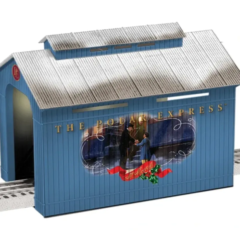 This is a Lionel 6-82500 O Polar Express Covered Bridge Kit. Features: Metal base, Lighted interior, Compatible with 027, O, and FasTrack track systems